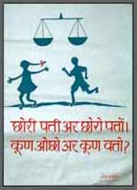 | The scale in the poster to the right denotes justice or equality, as the scales are evenly balanced; with this connotation, the poster denotes gender equality. In a picture recognition session with a rural audience, the poster was interpreted three different ways: 1) the intended gender equality, 2) boy and girl are running to the grocery store to buy grain. The weighing scales are associated only with shops, and 3) one of the children has polio. |