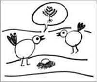 | These are recognized by most urban children who have been surrounded by comics. For rural youth, the speech bubbles are logically interpreted as clouds. Not only do they resemble the shape of clouds, they are also placed above the objects 'in the sky'. Rural audiences may also identify the speech bubble as a compound wall, built around a plantation to prevent grazing. | Symbolic representation: |