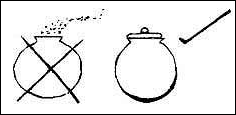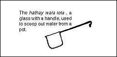 | This simple health message for non literate women was designed to read: "Cover your water pot to protect it from dust and flies, to avoid health risk". When asked to interpret the visual, the women asserted that the pot is uncovered and then placed behind two sticks; the tick mark next to the covered pot was interpreted as a hathay wala lota, a water scoop. The health content of the visual had been completely missed. | Gender Symbols: |