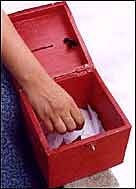 Participants put into the box questions that they would like to ask but are too shy to. The box is always locked to maintain the seriousness of the exercise.