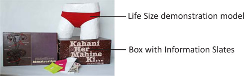Sadhvi Thukral, Pearl Academy Of Fashion, New Delhi, Final Degree Project with Vikalpdesign, November 2011 - April 2012 "Kahani Her Mahine Ki" A Menstruation Kit - developed for the visually impaired young girls and women. The kit "Kahani Her Mahine Ki" covers the subject of menstruation and how to manage during 'periods'. The kit has the following features: